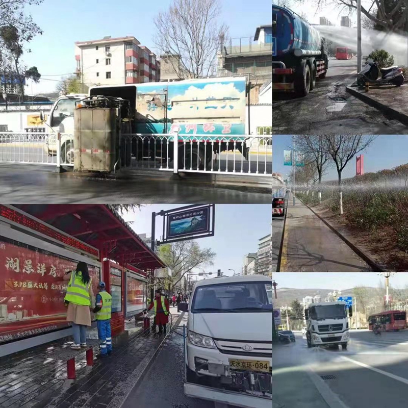 行动中,环卫中心各站所督促京环公司出动高压冲洗车、机械化洗扫车等环卫作业车辆10余辆,采用地毯式吸尘、机械化清扫、高空喷雾结合作业,对城区主次干道进行全面清洗,并出动1200余名环卫工作人员全力配合作业车辆,对辖区路面、背街小巷特别是部分重点路段、商贸区的绿化带护栏、沿街环卫设施进行全方位大清洁。同时,各街道办事处社区工作人员和志愿者按照网格化管理要求,全力开展城市“洗尘”行动,通过清洗,城区环境卫生状况得到明显改善。