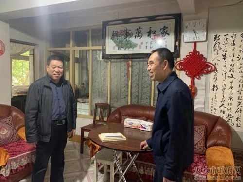 在离、退休老干部刘英喜、舒敏玫家中,市水务局副局长庞世忠同志与他们亲切交谈,了解他们的生活状况和健康情况,详细询问他们的困难、认真倾听他们对水利工作的建议,宣传和解读了主题教育的总要求和目标。希望老干部继续关注和支持天水水务事业的发展,建言献策,多提宝贵的意见和建议,同心协力把天水市水务的各项工作做到更好。