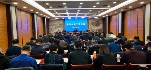 之后,逯克宗副市长作了重要讲话,强调,兴水利、除水害,历来是党中央、国务院高度关注的大事,是事关经济发展和民生福祉的要事。“十三五”以来,我们坚持以习近平新时代中国特色社会主义思想为指导,深入贯彻新发展理念,加强补齐农村基础设施短板,加快完善水利基础设施网络,提升城乡供水保障水平,着力解决水利发展不平衡不充分的问题,全市水利防洪保安全、水资源保障、水环境保护和服务民生能力显著提升,水利工程补短板成效明显,水利行业强监管稳步提升,全市水务工作呈现出投资加大、建设加快、监管加强、改革加速的良好态势,实现了一系列历史性突破,取得了一系列标志性成就。一是水利基础设施网络不断完善。二是脱贫攻坚农村饮水安全圆满收官。全面解决了建档立卡贫困户和深度贫困地区农村饮水安全问题,实现建制村自来水全覆盖,农村集中式供水人口比例达到96%以上。三是水生态文明建设迈出坚实步伐。全面建立河湖长制组织体系、制度体系、责任体系;最严格水资源管理制度有效落实,水资源杠杆作用日益明显,节水型社会建设稳步推进,水资源节约集约利用程度显著提高。四是水旱灾害防御取得显著成效。科学应对了2018年、2020年多次暴洪灾害,没有发生影响全局性的重大自然灾害事故,确保了主要河流、重点水库堤防安全,实现了“不死人、少伤人、少损失”的目标。