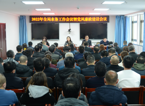 为认真贯彻全国、全省水利工作会议精神,落实市第八次党代会、市政府工作报告精神,2022年2月18日,市水务局召开2022年全局水务工作暨党风廉政建设会议。参加会议的有局党组成员、局机关各科室、局属各单位全体人员共计100多人。