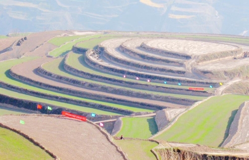 通过修梯田,配套田间道路,引水上山,配套灌溉设施,建设果园,发展高效农业。在新修的梯田上种植全膜玉米+地膜洋芋+菜瓜+豆角等高效作物,不仅推动当地农业产业化的发展,而且大幅度增加了农民收入。龙台镇在新修梯田里大面积种植油菜,在增收的同时还带动了乡村旅游,“游大美武山、赏油菜花海”成为武山县近年来重点打造的乡村旅游品牌。
