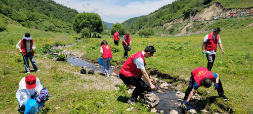 参观结束后,市水资源利用中心结合主题党日,组织全体干部职工来到藉河源头开展保护母亲河活动。活动现场,志愿者们发扬不怕脏不怕累的精神,手持垃圾袋、拾物钳、扫帚等工具,分工合作、相互配合,将藉河周边内散落的塑料袋、食品包装盒、饮料瓶、废纸等垃圾进行清理,对藉河沿漂浮垃圾进行清理打捞。同时向过往游客、垂钓爱好者以及周边的居民发放宣传资料,普及爱河护河知识,号召大家树立环保意识,共同呵护母亲河的生态环境。