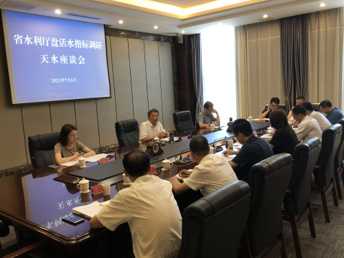 2022年7月5—6日,省水利厅副厅长陈继军率调研组,调研天水市盘活水指标工作开展情况,市水务局副局长杨芳随同调研。