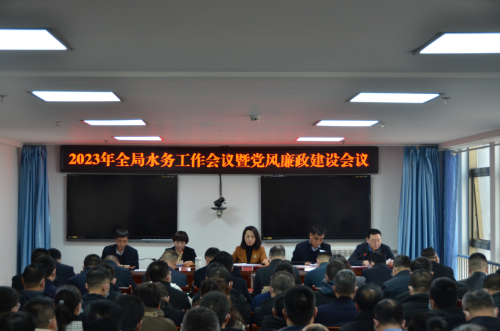 为认真贯彻党的二十大精神,全面落实全国、全省水利工作会议、市第八次党代会、市政府工作报告精神,2023年2月6日,市水务局召开2023年全局水务工作暨党风廉政建设会议。参加会议的有局党组成员,局机关各科室、局属各单位全体人员共计100多人。