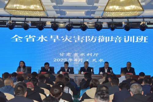 2023年4月11日,全省水旱灾害防御培训班在天水市麦积区开班,水利部水旱灾害防御司副司长王章立、省水利厅副厅长陈继军、省水利厅水旱灾害防御处处长贾珺奎、天水市政府副市长刘国军、天水市水务局局长刘云、天水市麦积区委书记康泰来出席开班仪式。