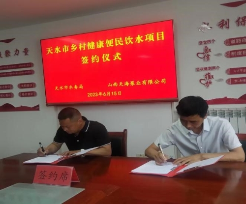 为全面贯彻省、市招商引资工作会议精神,充分发挥行业优势,聚焦为民便民,助力乡村振兴,按照市政府《关于推进农村供水高质量发展三年行动的实施意见》,通过调研论证、沟通洽谈,6月15日,天水市水务局与山西天海泵业有限公司成功签订了《天水市乡村健康便民饮水项目》合作协议,为广大农村群众提供健康、便捷的直饮水服务。