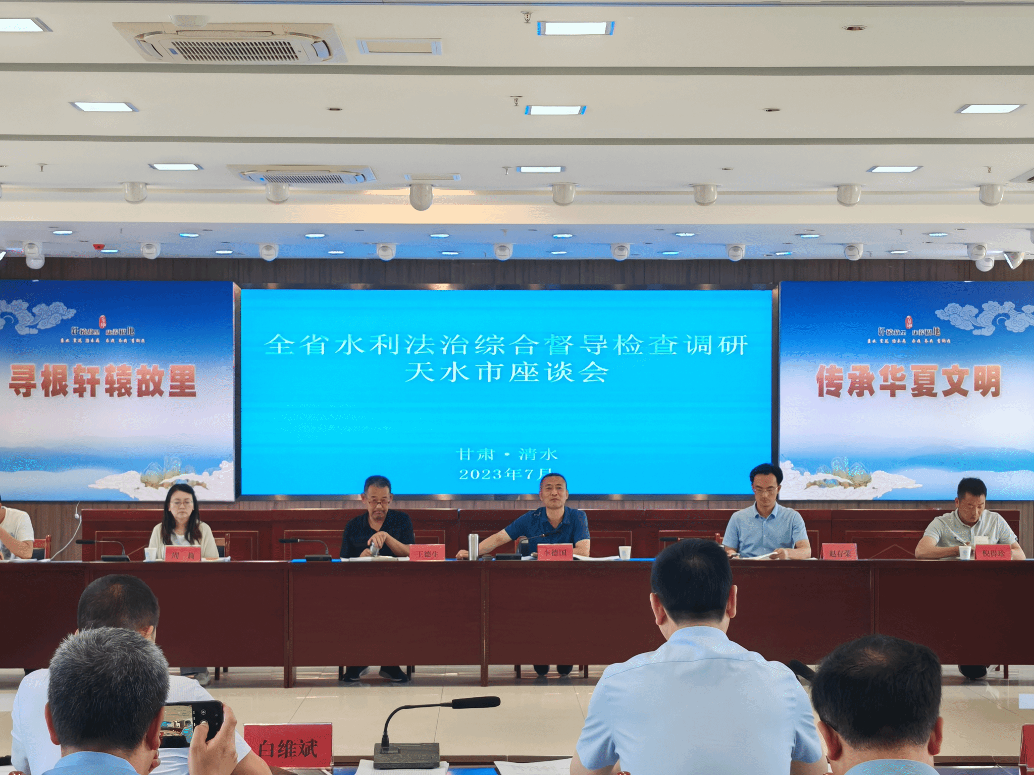 7月16日—17日,省水利厅政策法规处处长李德国带领第二督导检查组对天水市水务系统法治建设情况开展了督导检查调研,市水务局党组成员、副局长盛斌,四级调研员白维斌,市水政监察支队队长张宾陪同检查。