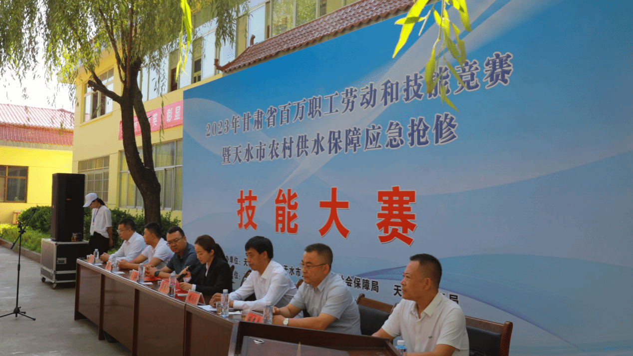 9月13日,2023年甘肃省百万职工劳动和技能竞赛暨天水市农村供水保障应急抢修技能大赛在秦州区农村供水水质检测中心顺利举行,市总工会副主席王雅琼, 市总工会办公室主任赵建业,市人力资源和社会保障局职业能力科樊宝峰科长,市水务局副局长胡小波、秦州区人民政府副区长薛小海、秦州区水务局局长吕咏星、县(区)水务局分管农村供水的副局长、饮水中心负责人等相关领导出席本次活动。