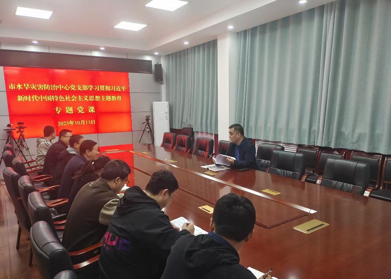 10月13日,市水旱灾害防治中心党支部召开学习贯彻习近平新时代中国特色社会主义思想主题教育专题党课,市纪委监委派驻市水务局纪检监察组组长、局党组成员安智辉同志以《感悟思想伟力 凝聚奋进力量 全力推动主题教育在水利系统走深做实》为主题讲授了党课,中心全体党员干部职工参加。
