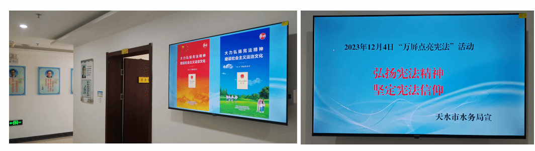 12月4日是第十个“国家宪法日”,市水务局立足水务实际,以“大力弘扬宪法精神,建设社会主义法治文化”为主题,开展了“宪法进机关,万屏点亮宪法”宣传活动。
