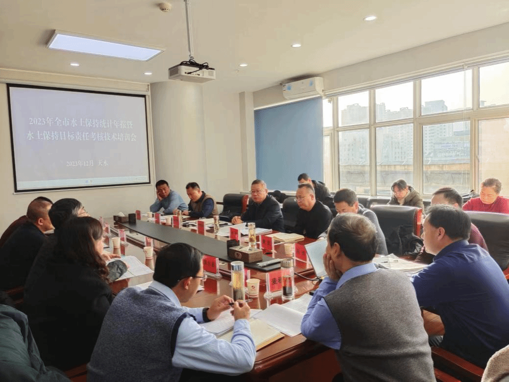 会议传达学习了《水利部2023年度全国水土保持规划实施情况评估工作的通知》《2023年度甘肃省水土保持目标责任考核方案》《2023年度天水市水土保持目标责任考核方案》等文件精神。会上,各县(区)水保站汇报了2023年工作完成情况及2024年工作谋划。市水保总站对2023年度统计年报填报和2023年度目标责任考核工作进行安排部署和要求,并对目标责任考核赋分细则进行解读和说明。