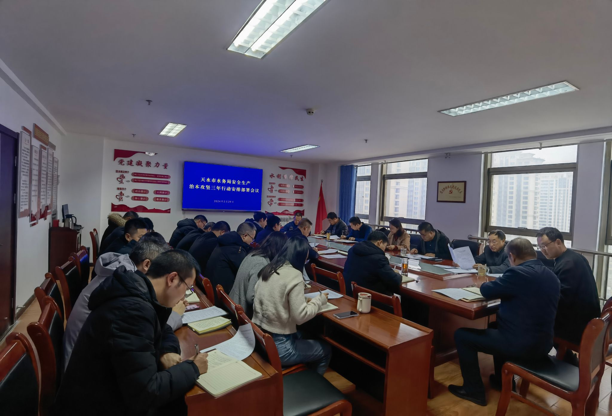 2024年2月29日,市水务局召开了安全生产治本攻坚三年行动安排部署会议,党组成员、四级及以上调研员、局机关各科室科长、局属各单位负责人参加了会议。