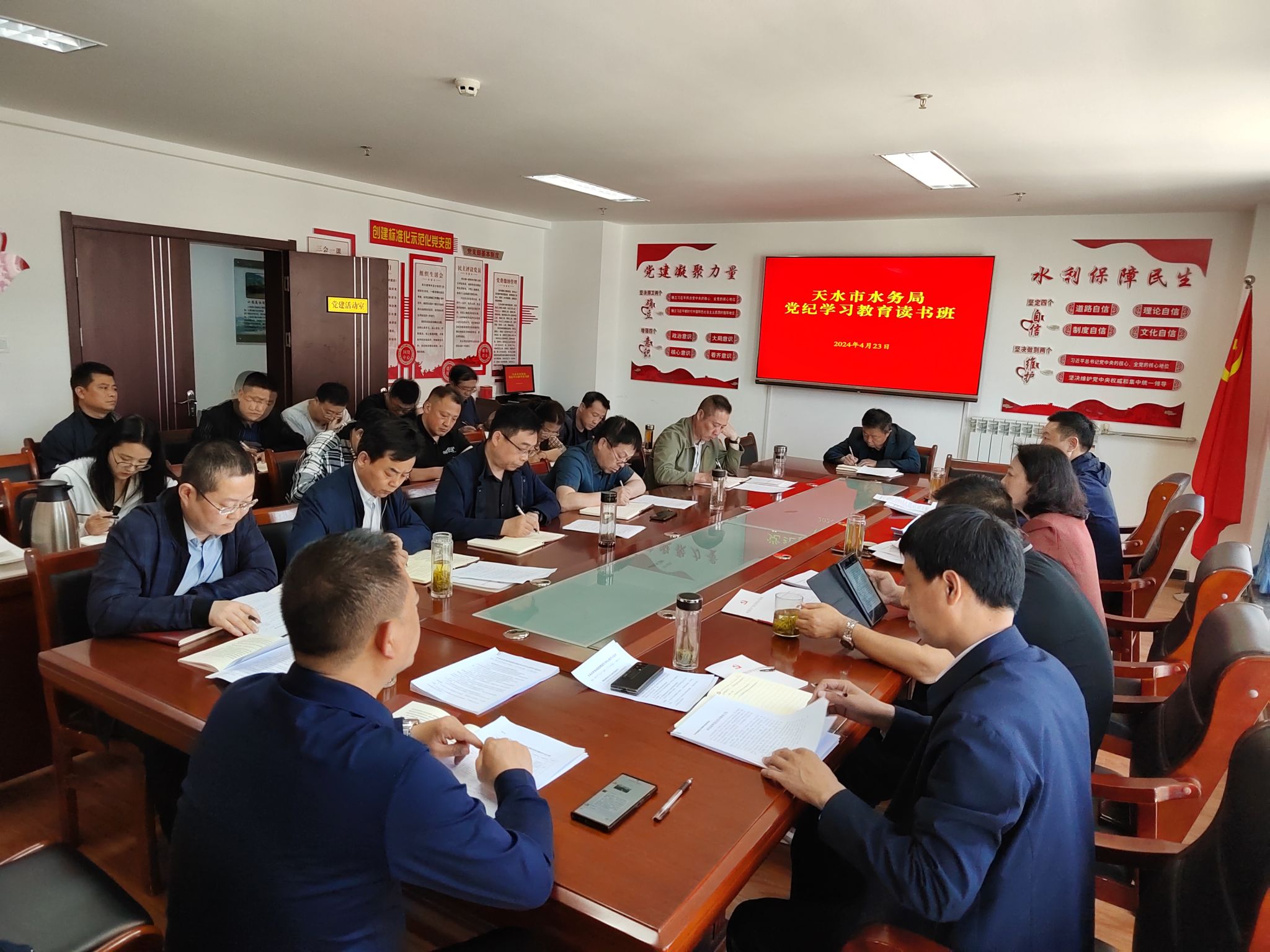 4月23日,市水务局党纪学习教育读书班开班,市水务局党组成员、四级及以上调研员,局机关各科室科长、局属各单位负责人参加读书班。