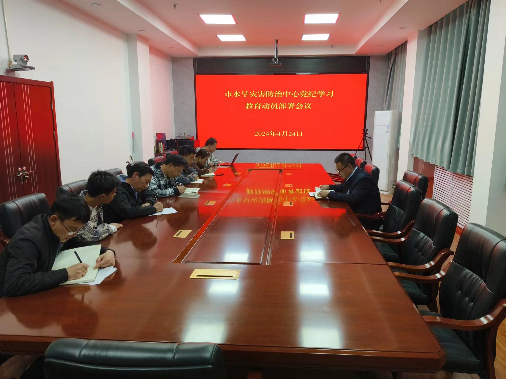 2024年4月24日,市水旱灾害防治中心召开党纪学习教育动员部署会议,会议传达学习了中央和省、市党的建设工作领导小组会议精神和《天水市水务局开展党纪学习教育工作方案》,集中学习了《中国共产党纪律处分条例》部分章节,并对中心党纪学习教育进行安排部署,中心全体人员参加。