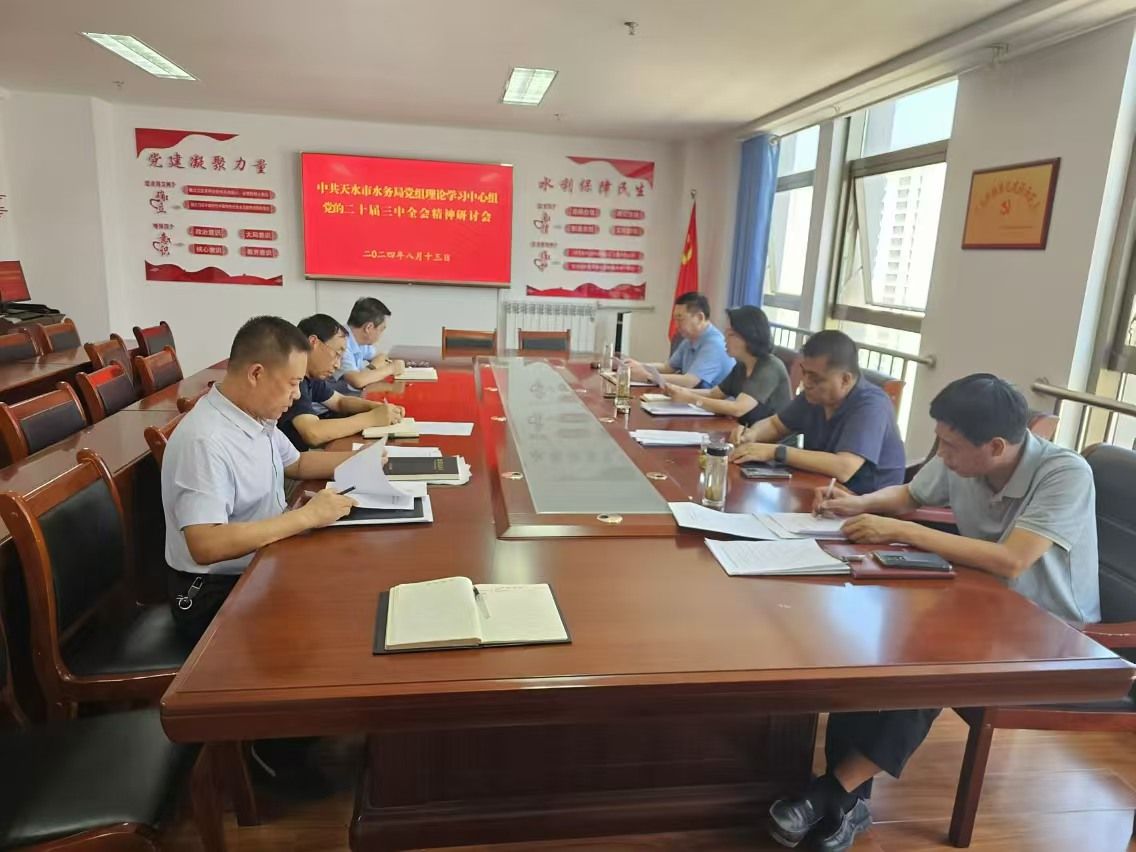 水务局党组理论学习中心组召开党的二十届三中全会精神学习研讨会议,集中传达学习党的二十届三中全会精神,开展交流研讨。会议学习了《中共中央关于进一步全面深化改革、推进中国式现代化的决定》和习近平总书记关于《决定》的说明,传达了中央、省委有关文件精神,局党组成员就学习党的二十届三中全会精神作了交流发言。