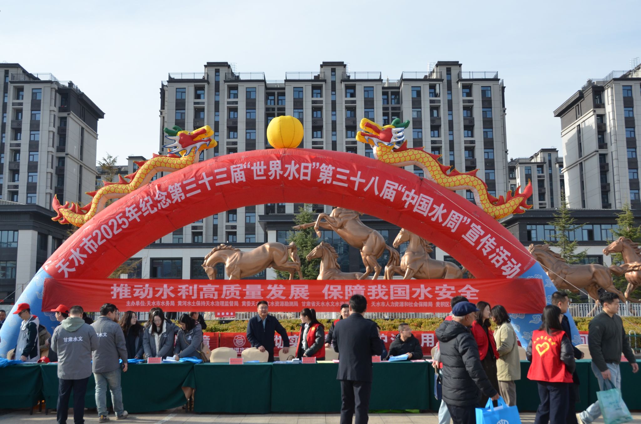 2025年3月22日是第三十三届“世界水日”,3月22日--28日是第三十八届“中国水周”。市水务局联合黄河水土保持天水治理监督局、黄委天水水文水资源勘测局、甘肃省天水水文水资源勘测中心、市人社局、麦积区水务局在麦积区盛达广场开展以“推动水利高质量发展,保障我国水安全”为主题的“世界水日”“中国水周”宣传活动,旨在提升全民节水观念意识和文明素养,将节水理念融入到日常生活,为构建节水型社会、保障水安全贡献天水力量。