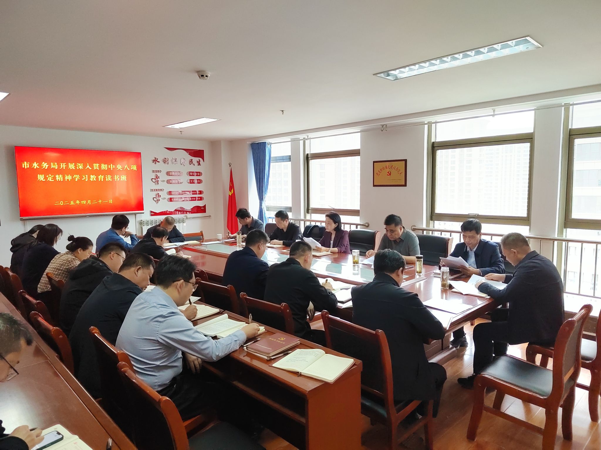 4月21日,市水务局召开深入贯彻中央八项规定精神学习教育读书班专题研讨会议。会议学习了《习近平关于加强党的作风建设论述摘编》部分章节,县处级以上领导干部围绕深入贯彻中央八项规定及其实施细则精神、习近平总书记关于加强党的作风建设的重要论述,联系思想和工作实际进行了交流研讨。