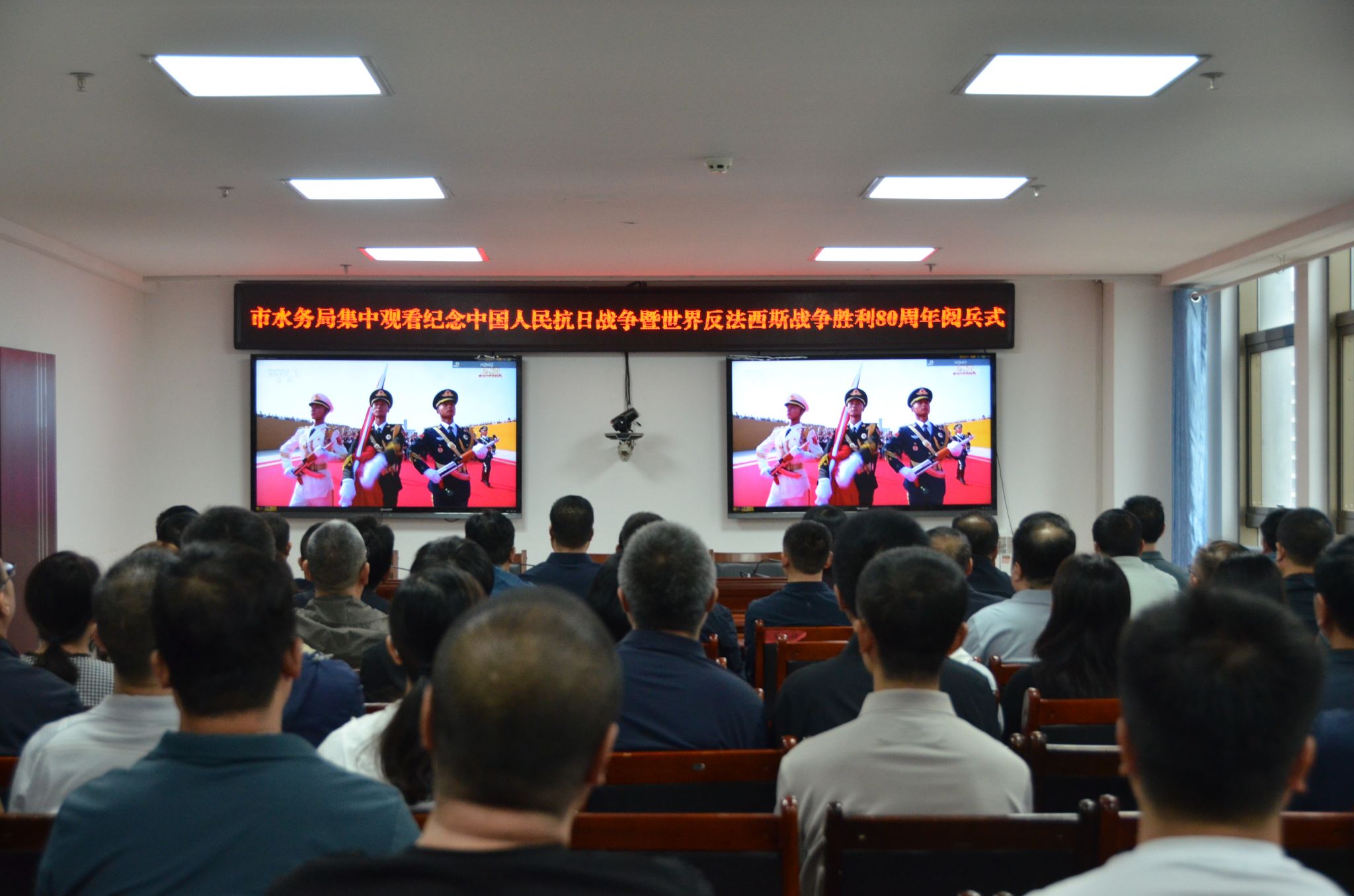 为弘扬伟大爱国主义精神,深切缅怀革命先烈,激发全体干部职工的爱国热情和工作干劲,9月3日上午,天水市水务局组织全体干部职工在14楼会议室集中收看纪念中国人民抗日战争暨世界反法西斯战争胜利80周年阅兵式现场直播。局领导班子成员、全体干部职工共计70余人参加。