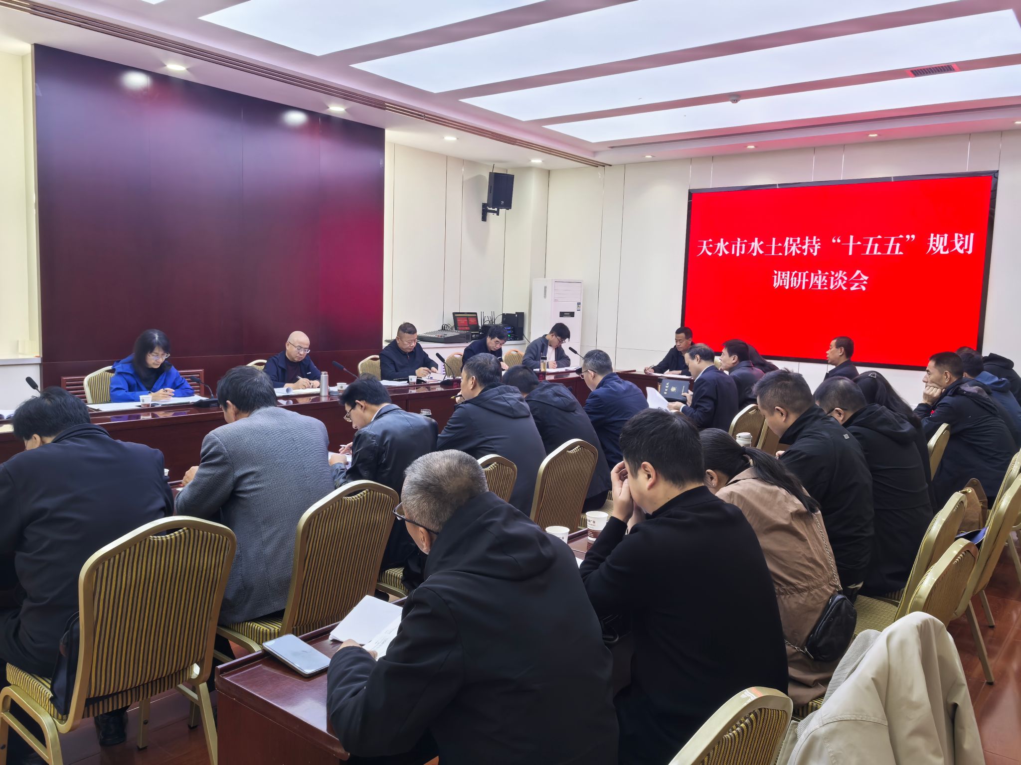 10月17日,在武山县文体中心西一楼会议室召开了省水利厅水土保持“十五五”规划调研座谈会暨天水市水土保持“十五五”规划调研座谈会。参会人员有天水市两区五县水土保持站站长及技术骨干,及天水市水利水电勘测设计研究院有限公司承担天水市水土保持“十五五”规划编制的设计人员。会议围绕“十五五”时期水土保持工作目标设定、任务部署、重点区域治理、措施精准化及机制创新等核心议题深入研讨,与会人员结合天水市“十四五”水土保持工作成效、当前面临的挑战及各县区水土流失现状差异,为科学合理确定“十五五”规划综合治理任务目标、优化项目布局、强化科技支撑和完善政策保障提出了建设性意见。