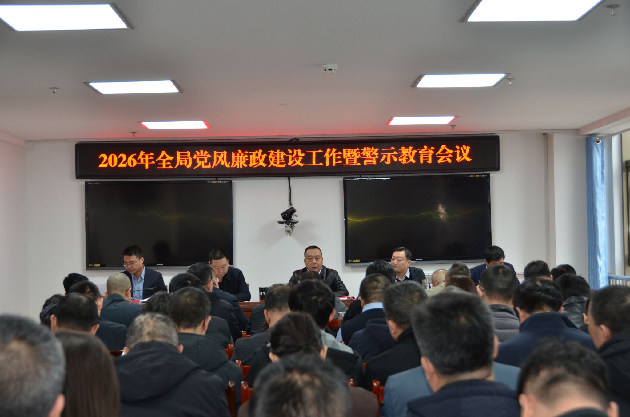 为深入学习贯彻二十届中央纪委第五次全会、十四届省纪委五次全会、八届市纪委六次全会部署要求,3月2日上午,市水务局召开2026年全局党风廉政建设工作暨警示教育会议。局党组书记、局长主持会议并讲话,市纪委监委派驻纪检监察组组长出席会议并提出工作要求,局领导班子成员、全体干部职工参加会议。