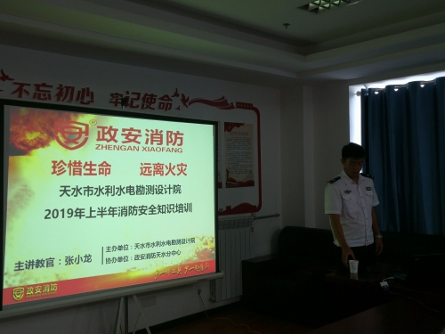 为进一步增强设计院干部职工的消防技能和自防自救能力,有效预防和遏制火灾事故的发生,实现安全生产形势持续稳定。6月25日,市水利水电勘测设计院召开消防安全培训会议。邀请政安防火知识宣传中心天水分中心教官张小龙为全院干部职工进行专业培训。