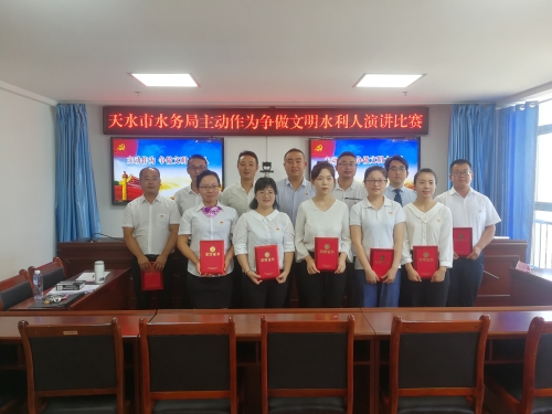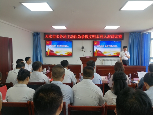 为深入贯彻落实全市创建“文明城市”相关精神,进一步展示干部职工文明形象,培育“忠诚、干净、担当,科学、求实、创新”的新时代水利精神,激励鼓舞全体干部不忘初心、主动作为,号召凝聚全体干部勇担使命、奋勇攻坚,打造文明单位、文明队伍,全面打赢2019年各项水利重点工作攻坚战。8月1日,市水务局组织开展了以“主动作为,争做文明水利人”为主题的演讲比赛活动。局机关等7个党支部选拔推荐了12名优秀年轻干部参加了比赛,局党组成员、县级领导、各科室、各站队负责人和全体干部职工参加了此次活动,市文明办领导到场指导比赛。