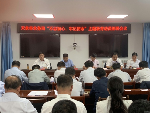 会议由市水务局局党组成员、副局长庞世忠主持,会上书面传达了省、市“不忘初心、牢记使命”主题教育会议精神,市纪委监委驻市水务局纪检监察组组长、党组成员安智辉宣读了《中共天水市水务局党组开展“不忘初心、牢记使命”主题教育实施方案》,局党组书记、局长汪杰刚作动员讲话,市委主题教育第七指导组组长刘玉璞作指导讲话。
