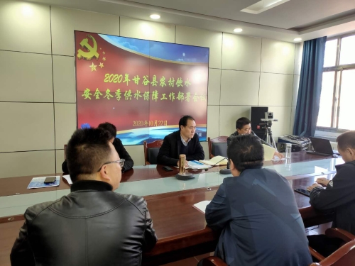 10月22日上午,甘谷县水务局召开2020年农村饮水安全冬季供水保障工作会议,会议由党组书记、局长王继福主持,灌溉服务中心主任张小忠、农村供水工程管理站站长王亚军、供水站全体干部职工及各供水站站长、供水管理分站站长共计30余人参加会议。