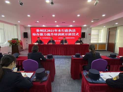 为进一步提高全区水利系统执法人员业务素质技能和适应新形势下水利执法工作需要,推动全区水行政执法工作再上新台阶。12月11日上午,秦州区2021年水行政执法综合能力提升培训班开班。市水务局副局长盛斌、区政府副区长薛小海出席开班仪式并讲话,区水务局党组书记、局长胡小波主持开班仪式。区水务局纪检组长甄文魁,以及区水政监察大队、区河湖事务服务中心、区水保预防监督站等单位水政执法人员共计30余人参加开班仪式。