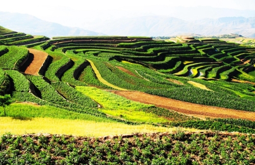 通过修梯田,配套田间道路,引水上山,配套灌溉设施,建设果园,发展高效农业。在新修的梯田上种植全膜玉米+地膜洋芋+菜瓜+豆角等高效作物,不仅推动当地农业产业化的发展,而且大幅度增加了农民收入。龙台镇在新修梯田里大面积种植油菜,在增收的同时还带动了乡村旅游,“游大美武山、赏油菜花海”成为武山县近年来重点打造的乡村旅游品牌。