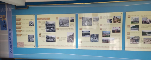 深挖掘彰显行业文化。6面“水利文化墙”各自独立又紧密联系,成为一个整体。2楼是“清水水务工作现状图”版块,对全县水利工作进行简介和总述,突出十六字治水方针,以县域牛头河水系、葫芦河水系、渭河水系、长沟河水系等四大水系为统领,对每条河流上已经建成的农村安全饮水工程、城区供水工程、堤防、淤积坝、汤浴水库等重点水利工程分布情况予以标记,使人能够一目了然对全县水利工作现状有一个全面、直观的了解。3楼是“清水水利发展简史”版块,对有记载以来,特别是新中国成立以来,清水水利历史上的重要事件、项目、场景、时间节点等有重要意义的事项,以时间为序,以图片为主,辅以文字说明,形成一条脉络清晰的水利发展简史。4楼是“精彩回顾”版块,从“亲切关怀”、“管治结合”、“抗旱防汛”、“饮水安全”、“水土保持”、“节水灌溉”、“百年大堤”等7个方面对上级领导的关怀和清水水务局的工作职能用图文并茂的形式进行了记录和提炼。5楼是“治水成效”版块,通过图片对比、场景拍摄的方式,对目前全县水利发展成果、良好的水生态、水环境进行展现,以点带面,生动展示了今日“轩辕故里。康养福地”的独特魅力。6楼是“崇高荣誉”版块,选取清水水务工作中荣获的一些重要奖项奖牌,予以复制张贴,增强自豪感,增加使命感。