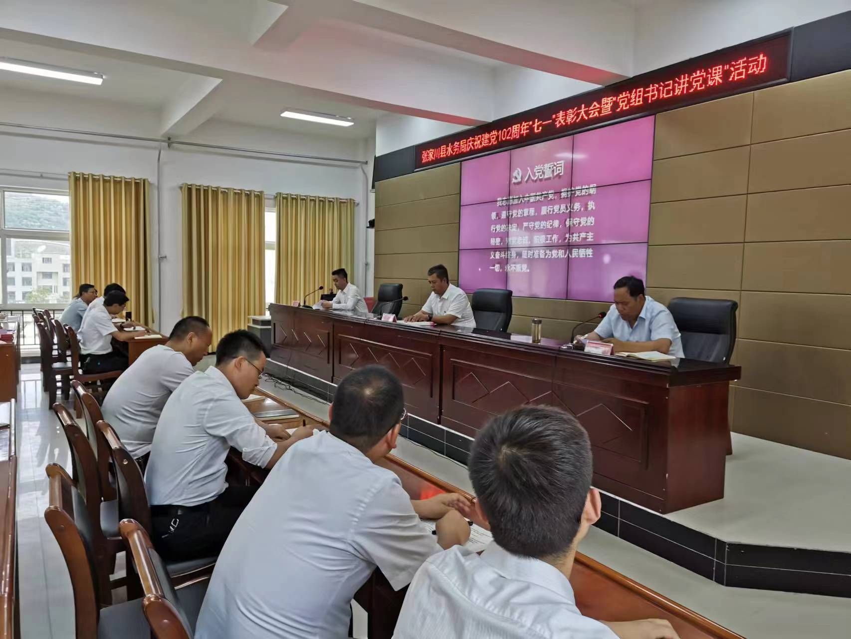 庆祝建党102周年先进表彰大会。召开“四优一先”表彰大会,表扬优秀共产党员4名、优秀党务工作者4名、先进党支部2个。通过对先进工作者进行表扬,激励党员干部创先争先,开创我局充满生机活力、奋发有为的工作新局面。