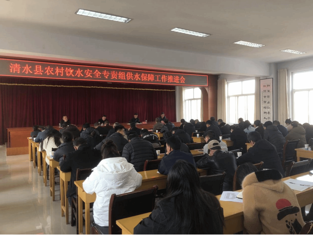 11月16日上午,清水县农村安全饮水专责组在清水县水务局六楼会议室再次召开供水保障工作推进会,会议由清水县水务局党组成员、副局长王宁柏同志主持,参加会议的有18乡镇分管领导及业务人员,水务局班子成员及局属各站队负责人,供水站和水质检测中心全体,恒华公司经理及各基层管理站站长,共计70余人。