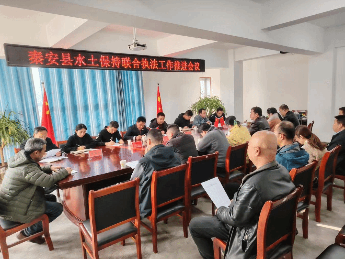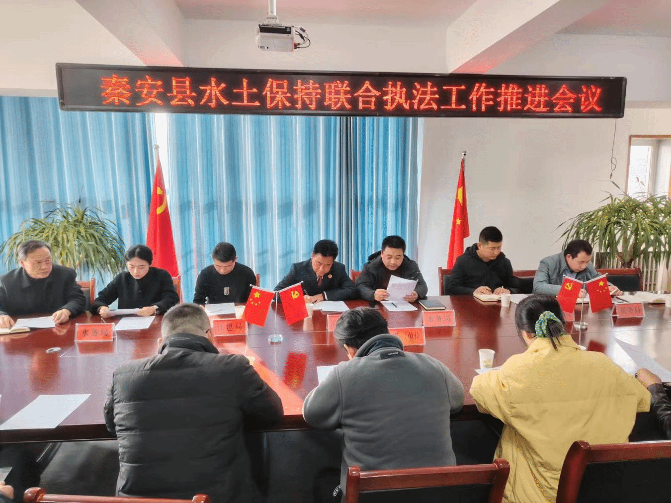 为深入贯彻落实《水土保持法》,认真执行水土保持法律法规,强化水土保持预防监督,加大水土保持生态环境保护力度,进一步落实水土保持"三同时"制度,防止生产建设项目造成人为水土流失,强化部门协同监管,全面提升水土保持监督执法能力,11月24日,秦安县水土保持站联合县检察院、税务局、自然资源局、住建局多部门召开秦安县水土保持联合执法工作推进会议。