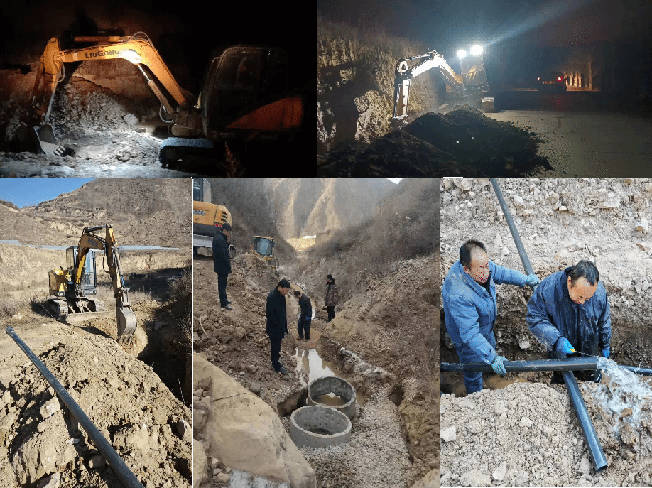 清水县水务局秉着“说了就算、定了就干、干就干好”的原则,紧急从各基层供水站抽调技术能手13名,投入挖掘机5台,铲车1台,全天候多作业面开展施工。时值三九寒天,地冻三尺有余,恶劣的自然条件给工程施工造成了很大的困难,但施工进度慢一分,群众便要多等一天,这件事慢不得、等不起,必须加油干、使劲干。为此,施工队员们克服一切困难,加足马力,冒着凌冽的寒风,淌着刺骨的冰水,夜以继日、通宵达旦地抢进度、赶工期。水务局3名局党组成员连续三天到施工一线进行督导,确保施工安全管理到位,进度按节点推进,管槽开挖深度达标,不留任何隐患。经过三天两夜争分夺秒、不眠不休的奋战,终于于1月12日下午,远门农村饮水安全工程安业抗旱应急水源工程顺利建成通水,共新建截流水源1座,铺设管道2400余米,该水源每日至少可为远门农村饮水安全工程补充水量170m3,可有效缓解工程受益区群众的生活用水问题。