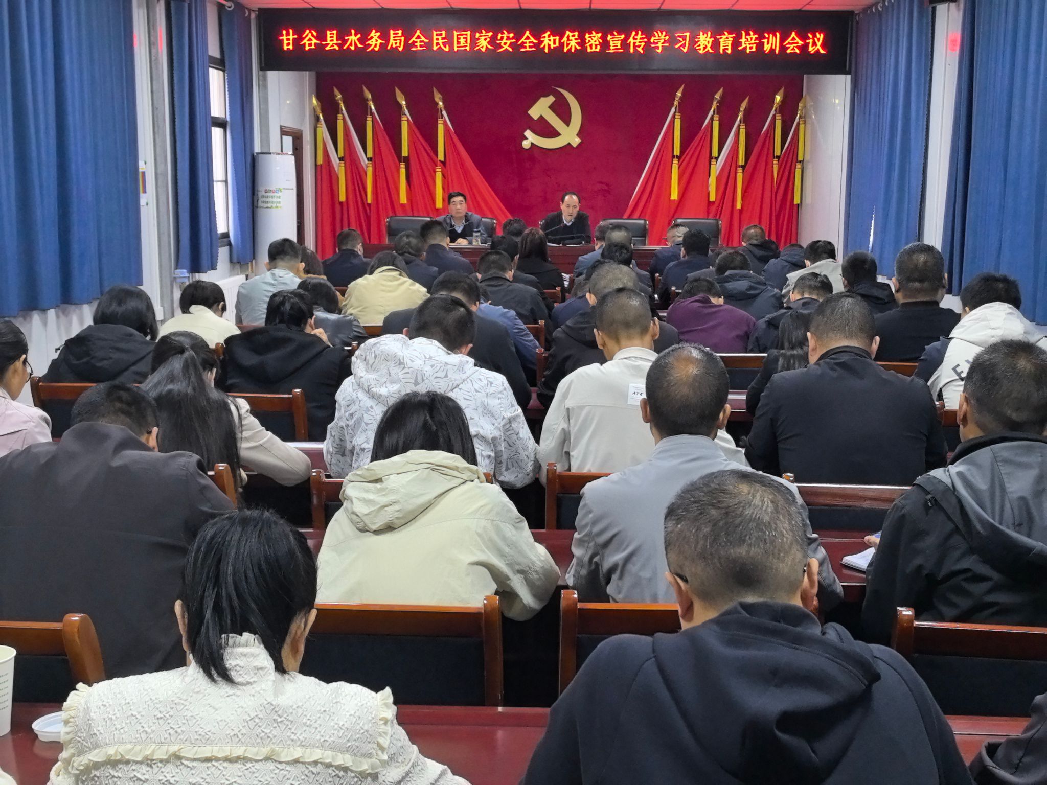 近日,甘谷县水务局召开全民国家安全和保密宣传学习教育培训会议,会议由局党组书记、局长王继福主持,局党组成员、科级领导干部、各供水站站长、机关全体干部职工共计60余人参加会议。