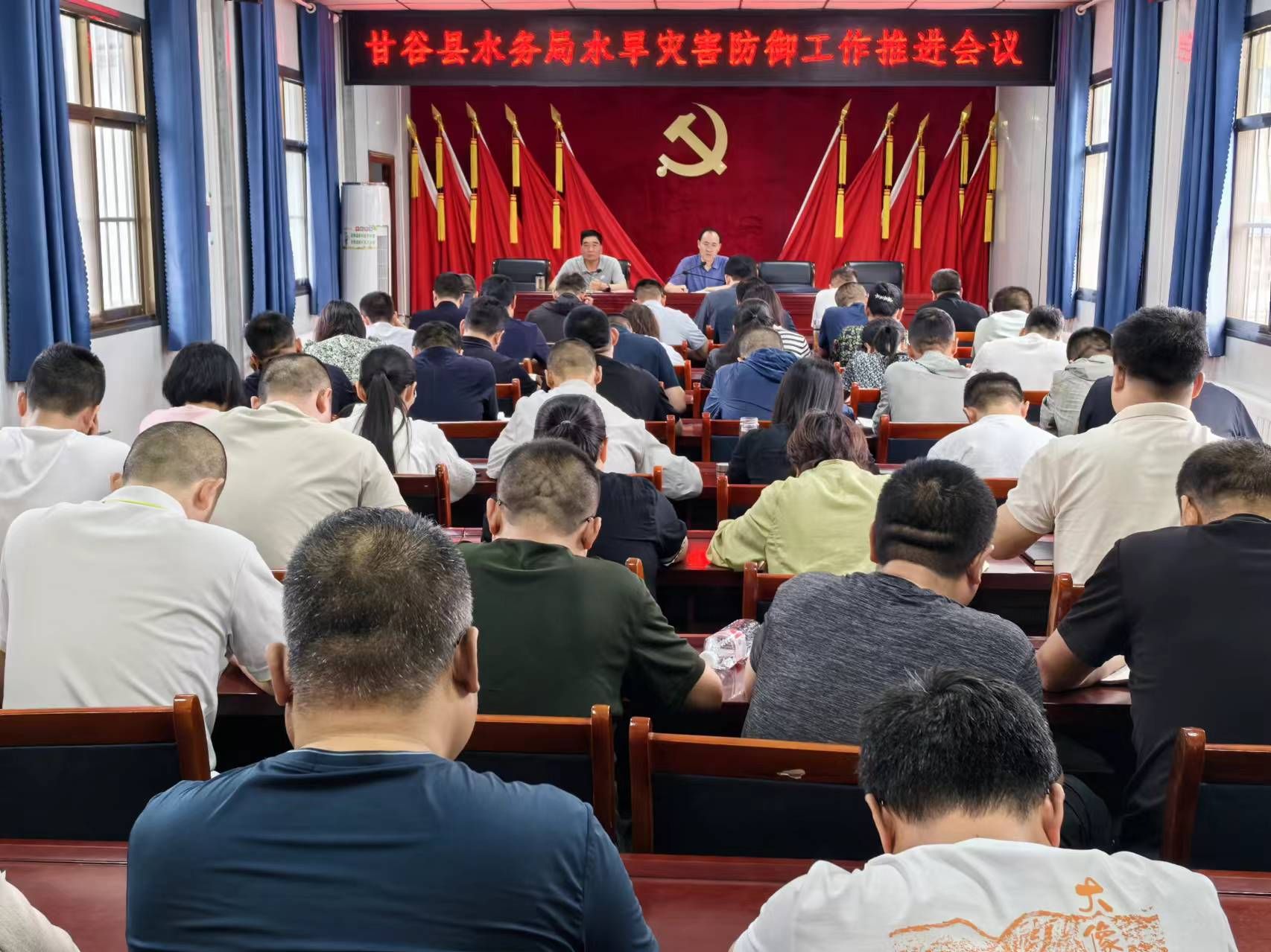 7月15日,甘谷县水务局组织召开水旱灾害防御工作推进会议,会议由局党组书记、局长王继福主持,局党组成员、科级领导干部、各供水站负责人、机关全体干部职工60余人参加会议。