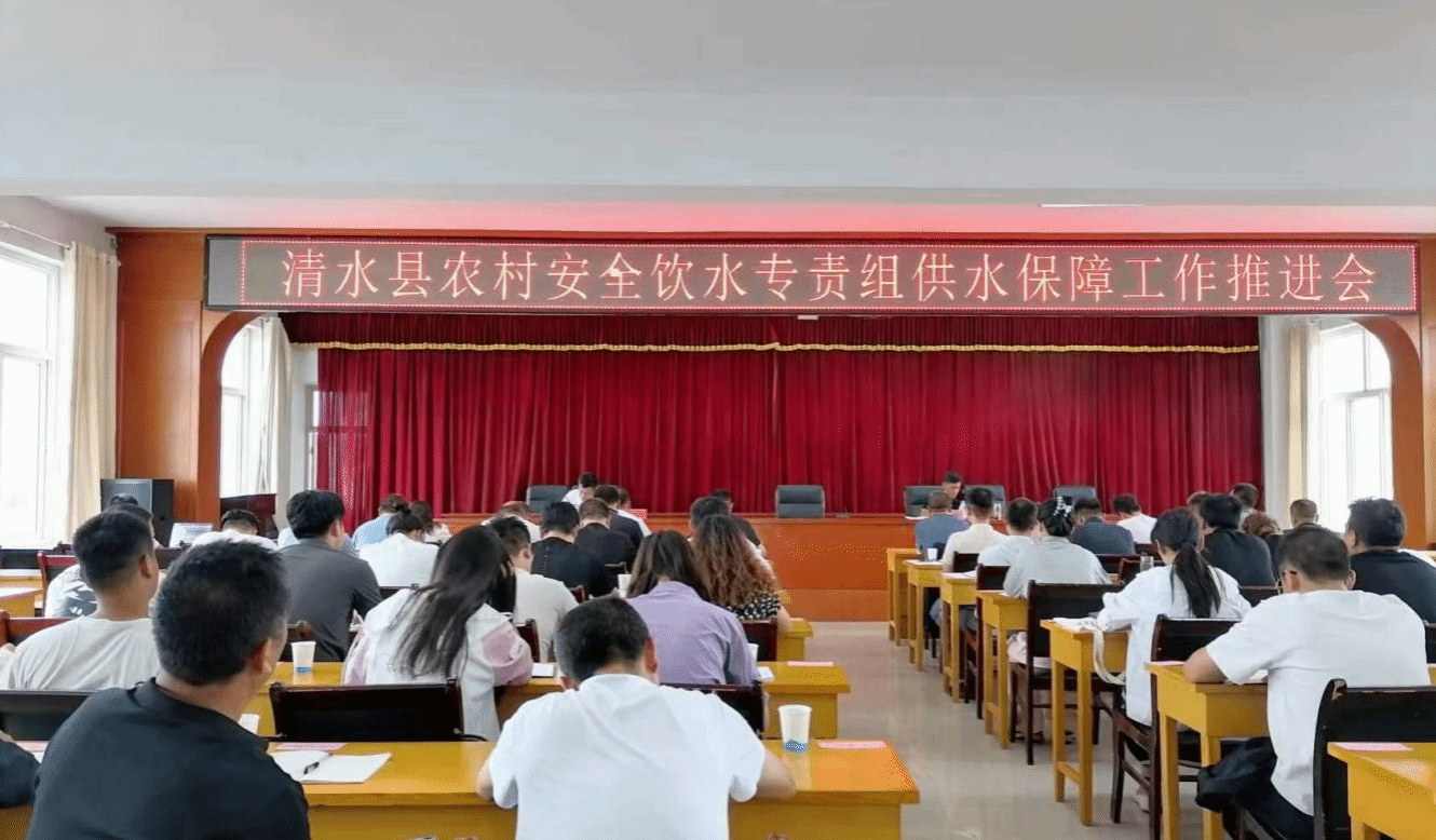 8月30日上午,在清水县水务局召开清水县农村安全饮水专责组供水保障工作推进会,18乡镇分管领导及业务人员,水务局班子成员,局属各站队负责人,供水站和水质检测中心全体人员,恒华公司负责人,基层管理站站长,共计70余人参加会议。