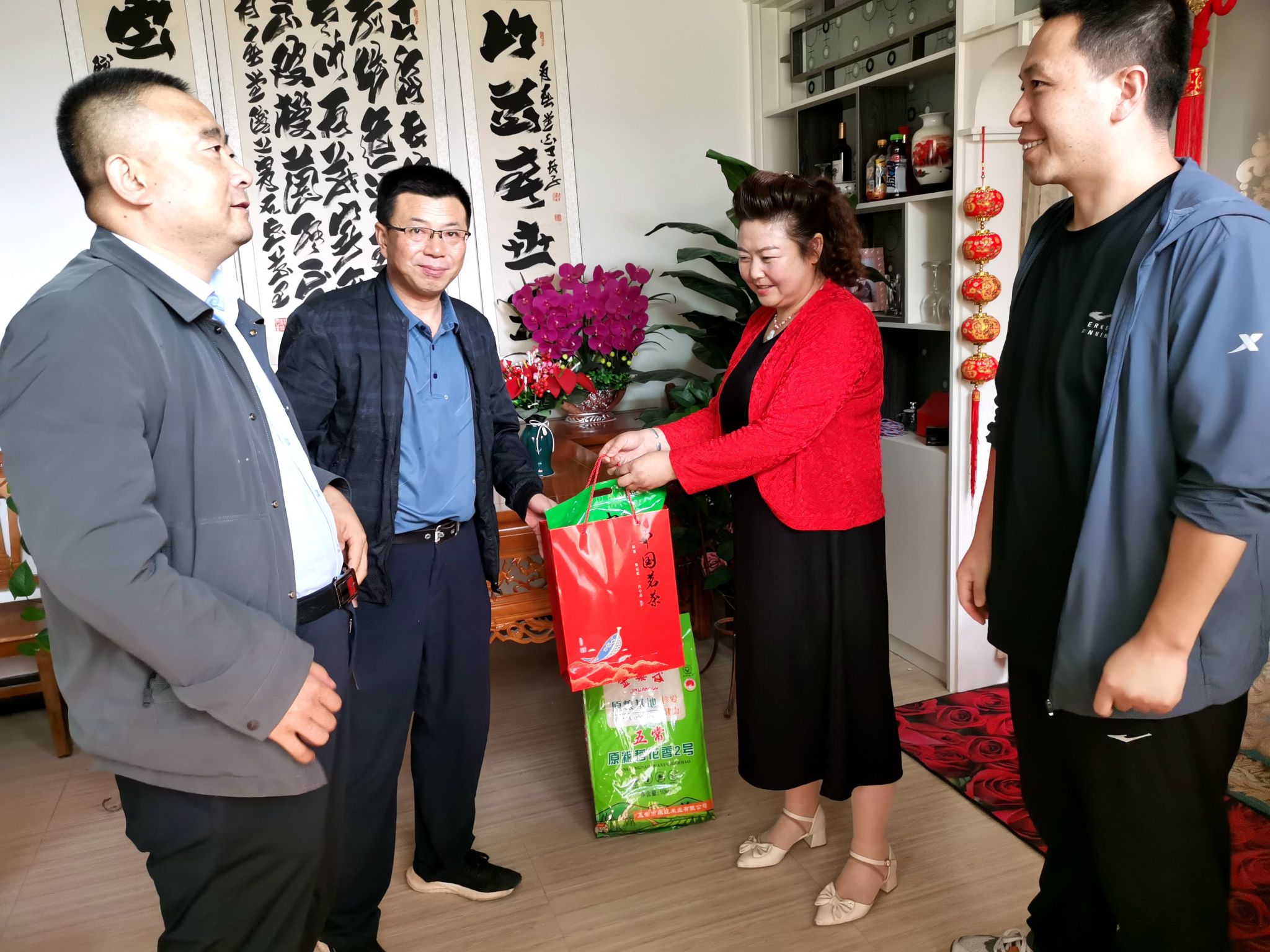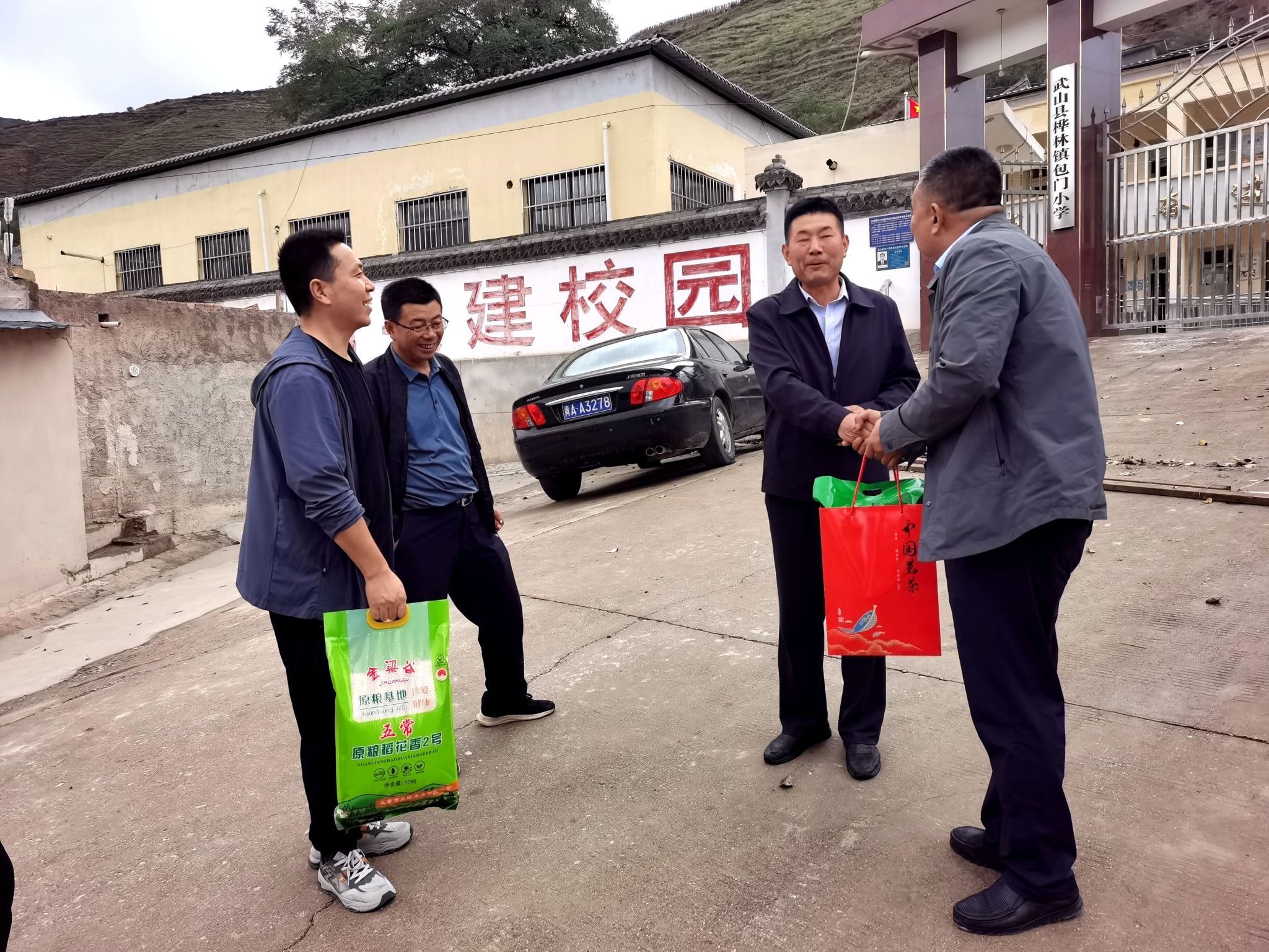 慰问组一行深入桦林镇对包门小学刘锁成教师、天局小学牛红霞教师开展走访慰问,为他们送去大米、茶叶等慰问品。