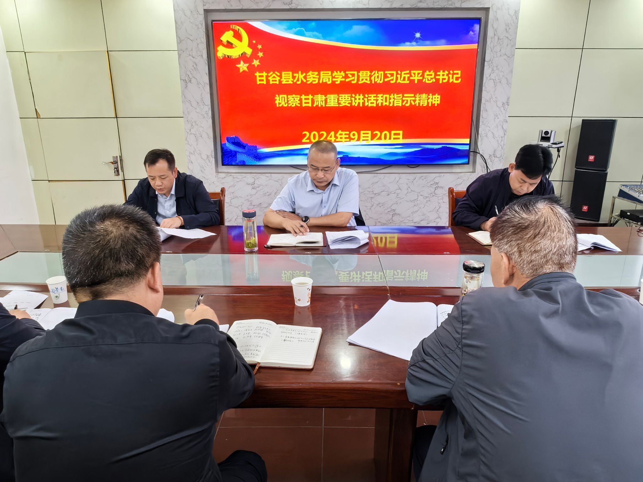 9月20日,甘谷县水务局召开党组(扩大)会议,专题传达学习习近平总书记视察甘肃重要讲话重要指示精神、习近平总书记在全面推动黄河流域生态保护和高质量发展座谈会上的重要讲话精神,以及省委、市委、县委常委会(扩大)会议精神和省政府、市政府、县政府党组(扩大)会议精神,研究部署贯彻落实工作。党组书记张克义同志主持会议,局领导班子成员、科级领导干部参加会议。