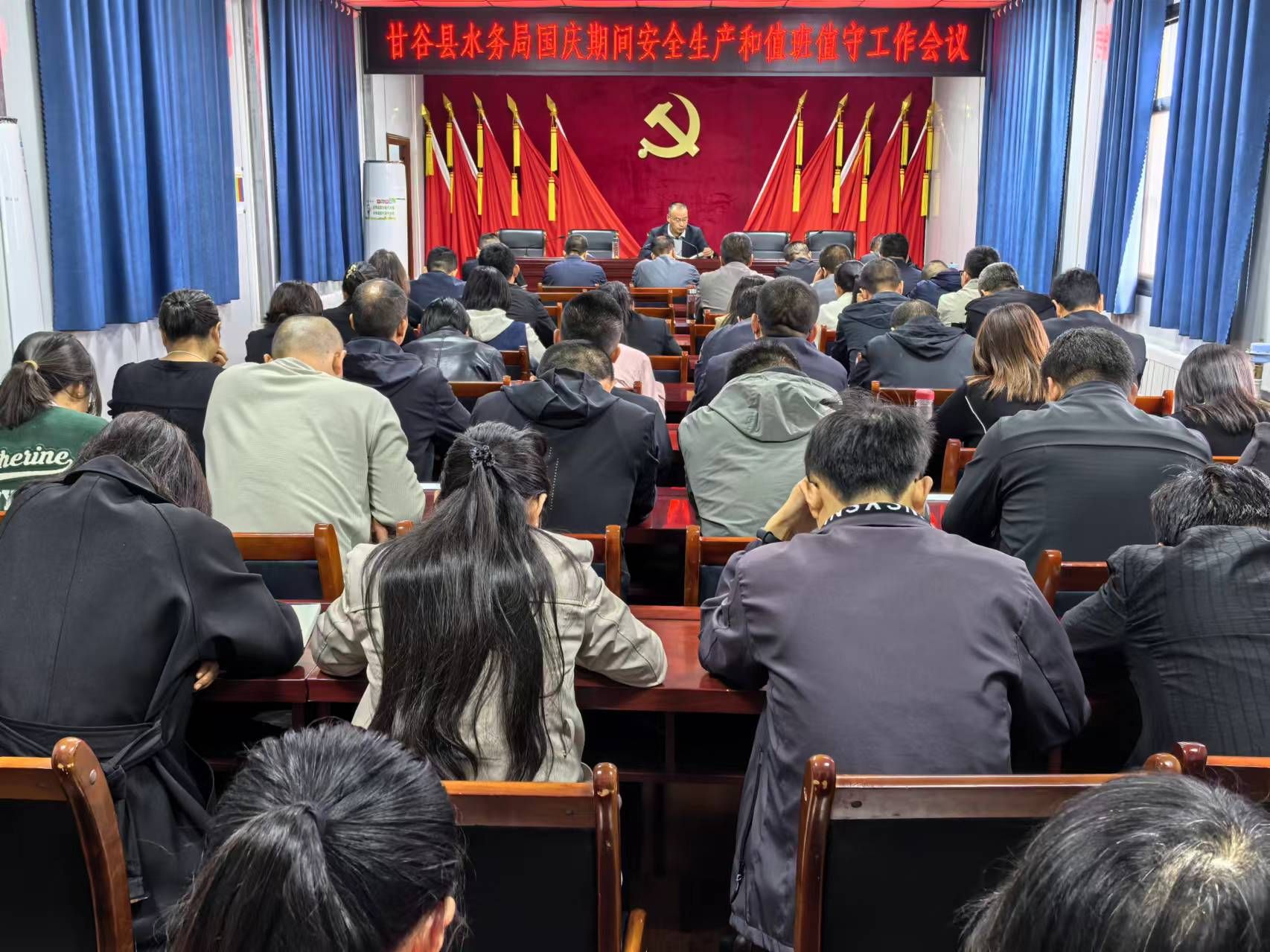 9月29日,甘谷县水务局召开国庆期间安全生产和值班值守工作会议,会议由局党组书记张克义主持,局党组成员、科级领导干部、各供水站站长、机关全体干部职工共计60余人参加会议。