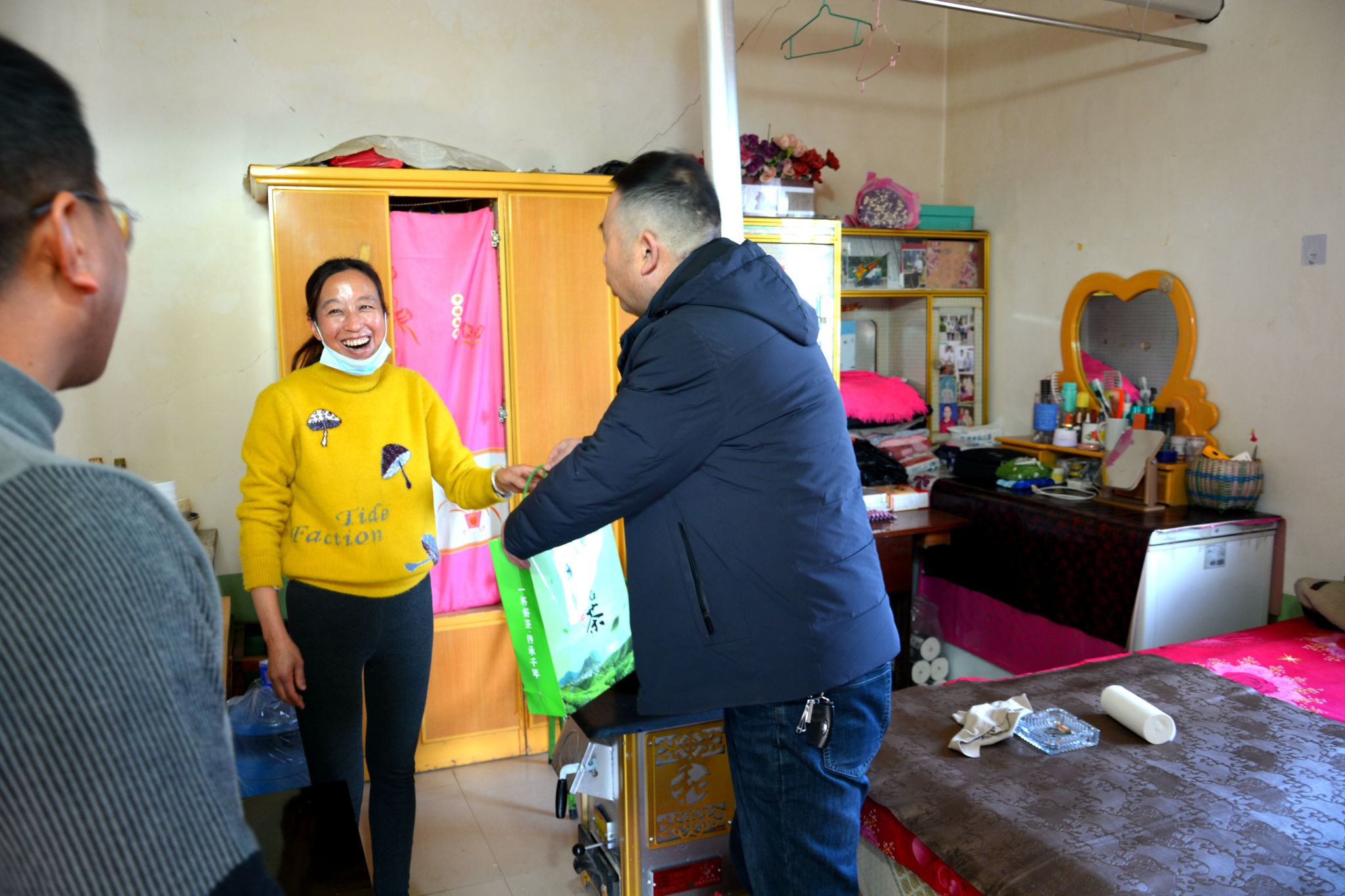 走访慰问中,大家与困难群众亲切交谈,详细了解其家庭经济、生产生活、政策落实和身体健康状况。倾听群众所思所盼,为他们提供力所能及的帮助,为他们送去茶叶和春联等慰问品,并叮嘱他们注意冬季用电用煤安全,确保他们过一个安定祥和的春节。