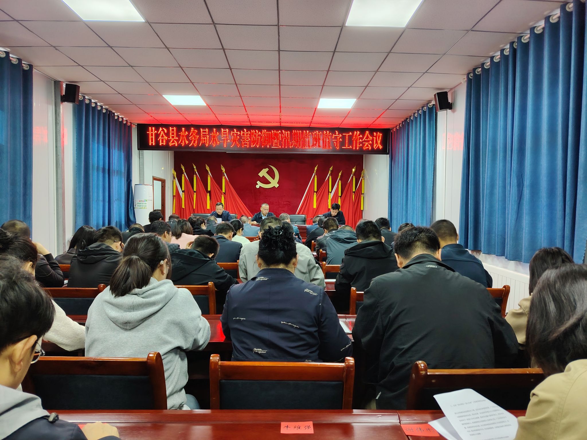 为认真做好2025年汛期水旱灾害防御工作,4月14日,甘谷县水务局召开水旱灾害防御暨汛期值班值守工作会议,局党组成员、科级领导干部、各股室站所负责人、机关全体干部职工60余人参加会议。