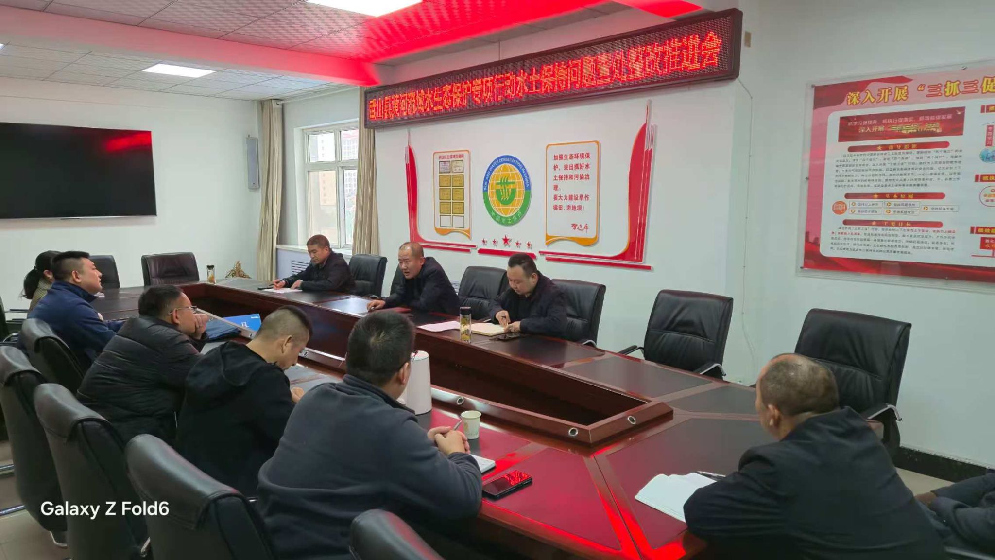 会议强调,黄河流域水生态保护专项行动水土保持问题整改工作时间紧、任务重,各相关生产建设思想上要高度重视,把黄河流域水生态保护专项行动水土保持问题整改作为当前首要任务,靠实施工责任,全面彻底整改;行动上要安全迅速,聚焦严重水土流失问题和隐患,统筹调度人力物力财力,倒排工期,抢抓时机,保障安全,严格按照省水利厅批准的整改方案落实整改措施,确保整改工作有力有序开展;整治上要举一反三,深入反思项目建设过程中水土保持措施落实方面存在的问题,深刻汲取教训、引以为戒、对风电项目、矿山项目建设过程中存在的相关问题进行全面排查、一并整改,确保整改无遗漏无盲区;配合上要协同联动,下一步水保站将加强与发改、林草、生态环境、自然资源、检察院、税务等部门密切协作,建立信息共享、线索移交、联合执法机制,对发现的水土保持违法违规问题依法处置,并追究生态损害赔偿责任,全力推动全县水土保持监督管理工作再上新台阶。