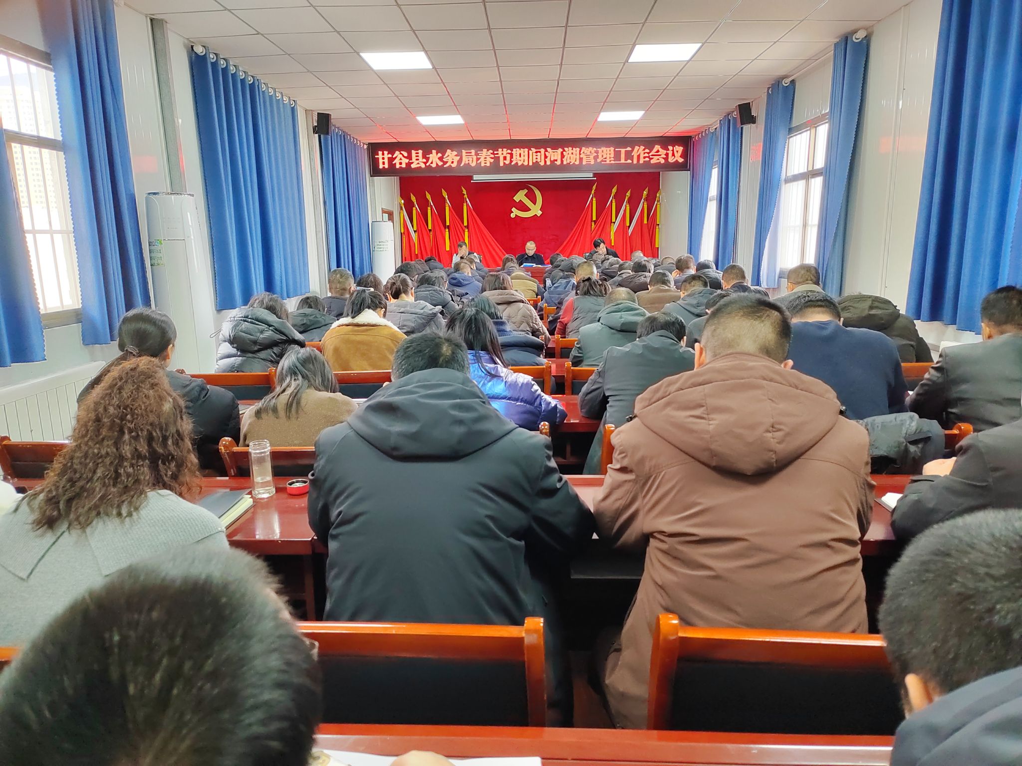 为进一步筑牢农村供水安全防线、守护河湖生态环境,确保全县人民度过平安、祥和的新春佳节。2月9日,甘谷县水务局组织召开春节期间农村供水保障和河湖管理工作专题部署会议。局党组书记、局长张克义主持会议,局党组成员、科级领导干部、各供水站站长、机关全体干部职工60余人参加会议。