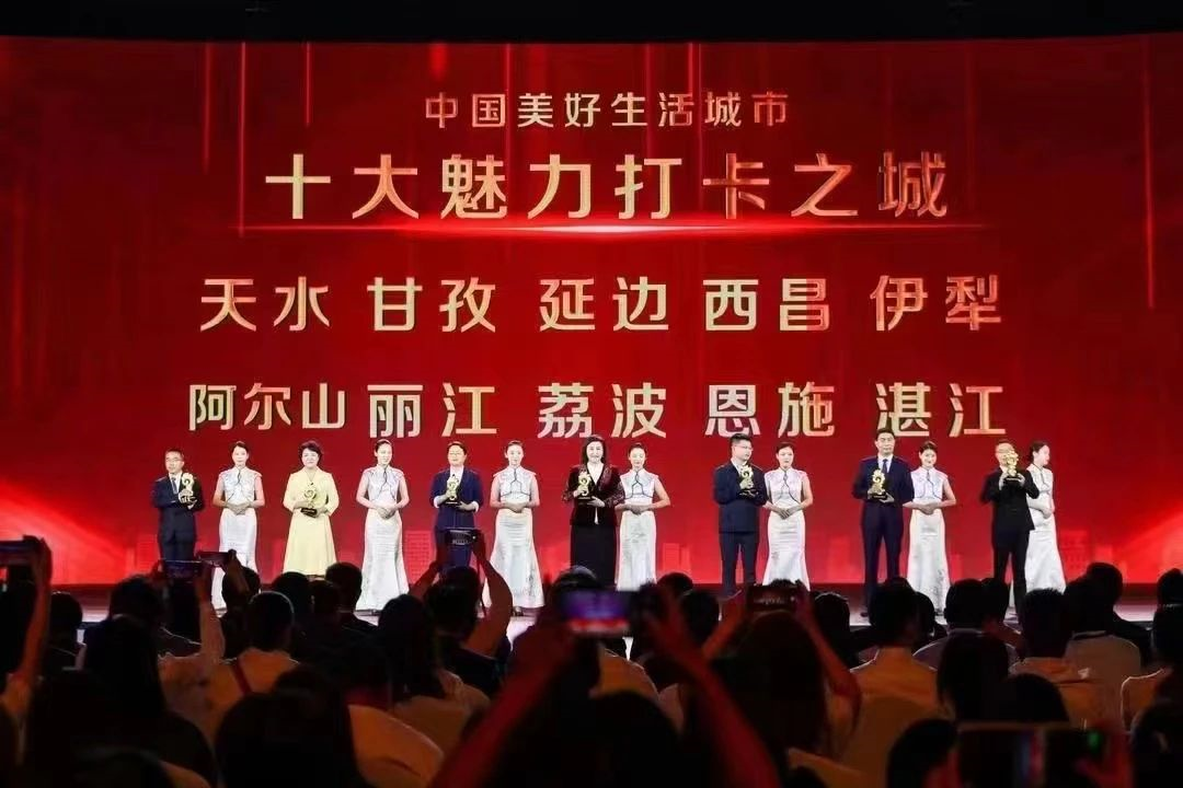 与天水一同上榜“十大魅力打卡之城”的还有甘孜、延边、西昌、伊犁、阿尔山、丽江、荔波、恩施、湛江,盛典还发布了“十大大美之城”、“十大秀美之城”和“十大旅游向往之城”。
