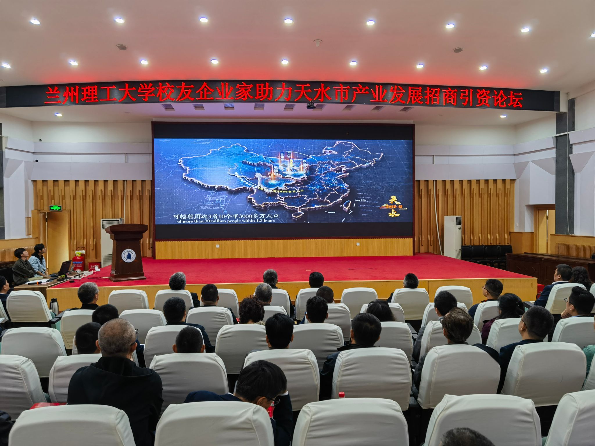 为进一步探索实践“新时代校友经济”,推动政府、高校、校友之间同频共振、融通创新、深化合作、共同发展,10月29日,由甘肃省政协主办的“智汇天水、共谋发展”——兰州理工大学校友企业家助力天水市产业发展招商引资论坛在兰州理工大学逸夫科技馆隆重举行。甘肃省政协教科卫体委员会副主任李斌,天水市政协副主席罗增芳,兰州理工大学党委常委、副校长冀宏,天水市企业代表以及来自全国各地的兰州理工大学校友企业家共计70余人参加了本次活动。天水市招商局在论坛上作了招商专题推介。