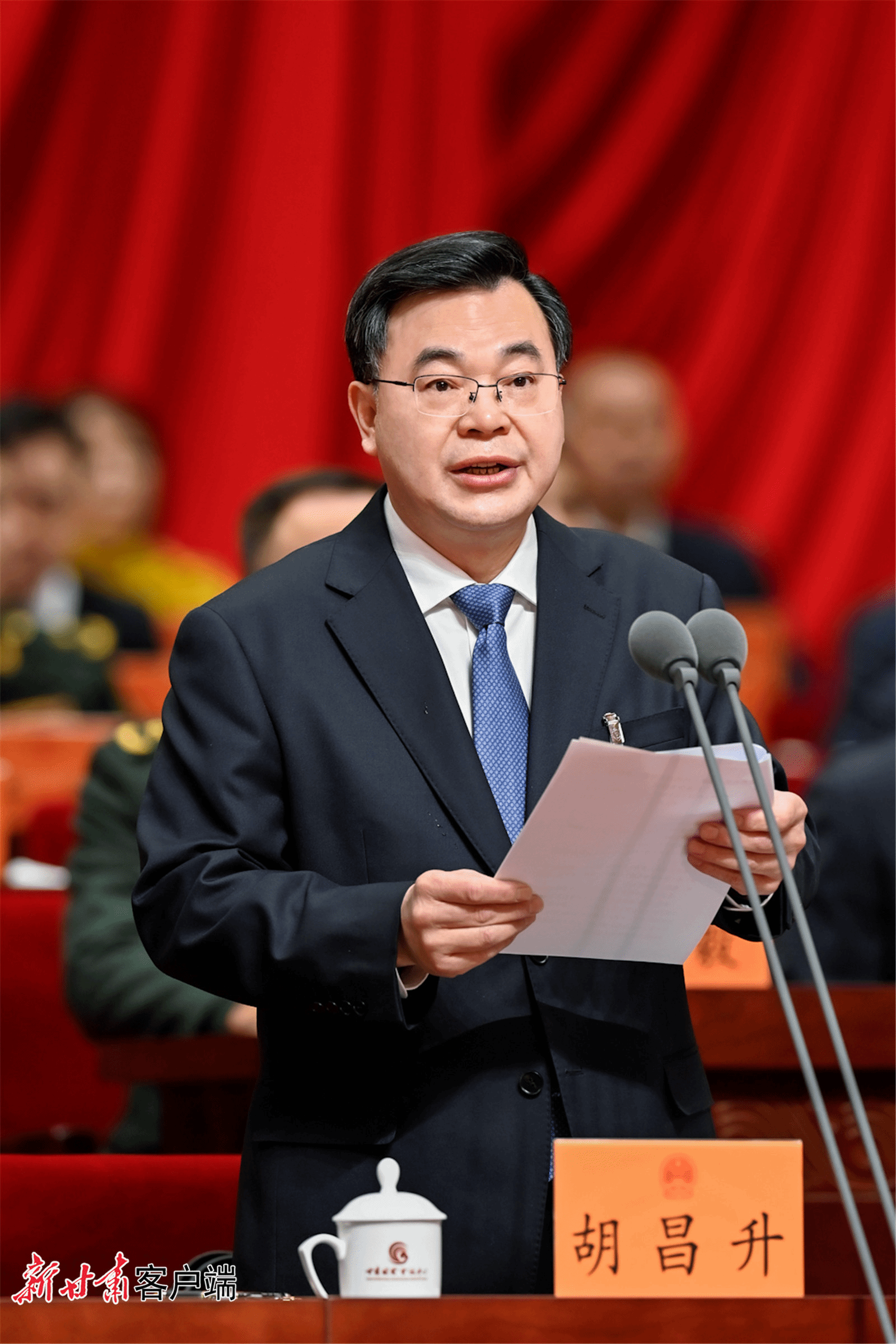 大会主席团常务主席、执行主席胡昌升主持大会。大会主席团常务主席、执行主席嘉木样·洛桑久美·图丹却吉尼玛、马廷礼、胡焯、李沛兴、俞成辉、戴超、李德新在主席台执行主席席就座。