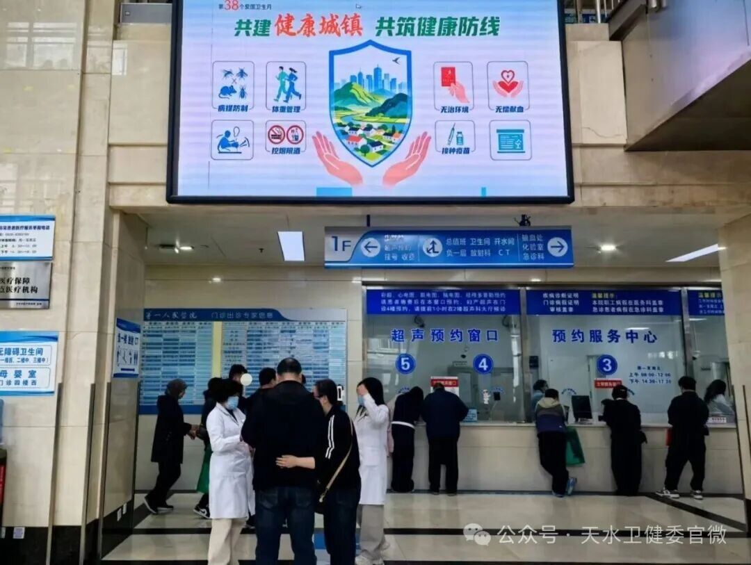 2026 年 4 月是第 38 个爱国卫生月,今年活动主题为 “共建健康城镇 共筑健康防线”。为深入推进爱国卫生运动,我市卫健系统积极响应、迅速部署,天水市卫生健康委紧扣活动主题,结合“作风建设年” 活动要求,组织市属各医疗机构在门急诊、临床科室等区域,开展了一系列形式多样的健康科普宣教活动,将爱国卫生理念与优质医疗服务深度融合,切实提升患者及家属等群众的健康素养 。