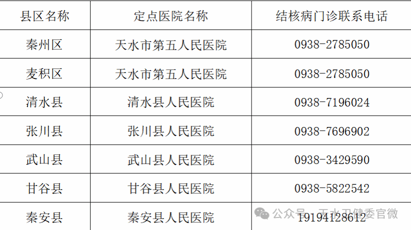 天水市结核病定点医院公告
